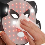 Reinigen Sie Ihre LED-Glow-Maske nach Gebrauch immer gründlich. Für optimale Ergebnisse empfehlen wir, die Maske mit einem Silikon-Reinigungsspray einzusprühen. Befeuchten Sie dann ein fusselfreies Tuch oder Handtuch mit warmem Wasser und wischen Sie alle verbleibenden Rückstände gründlich ab.